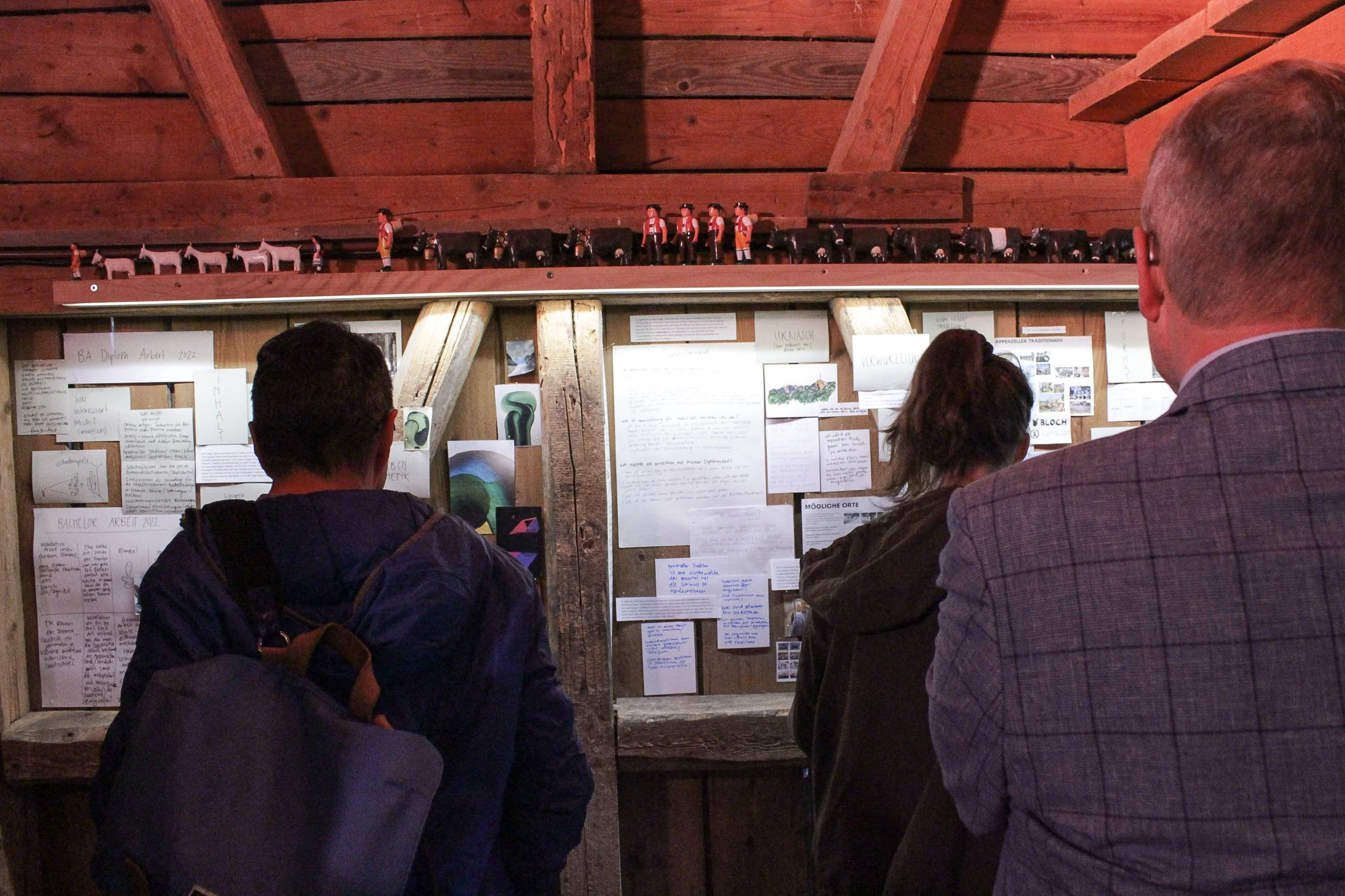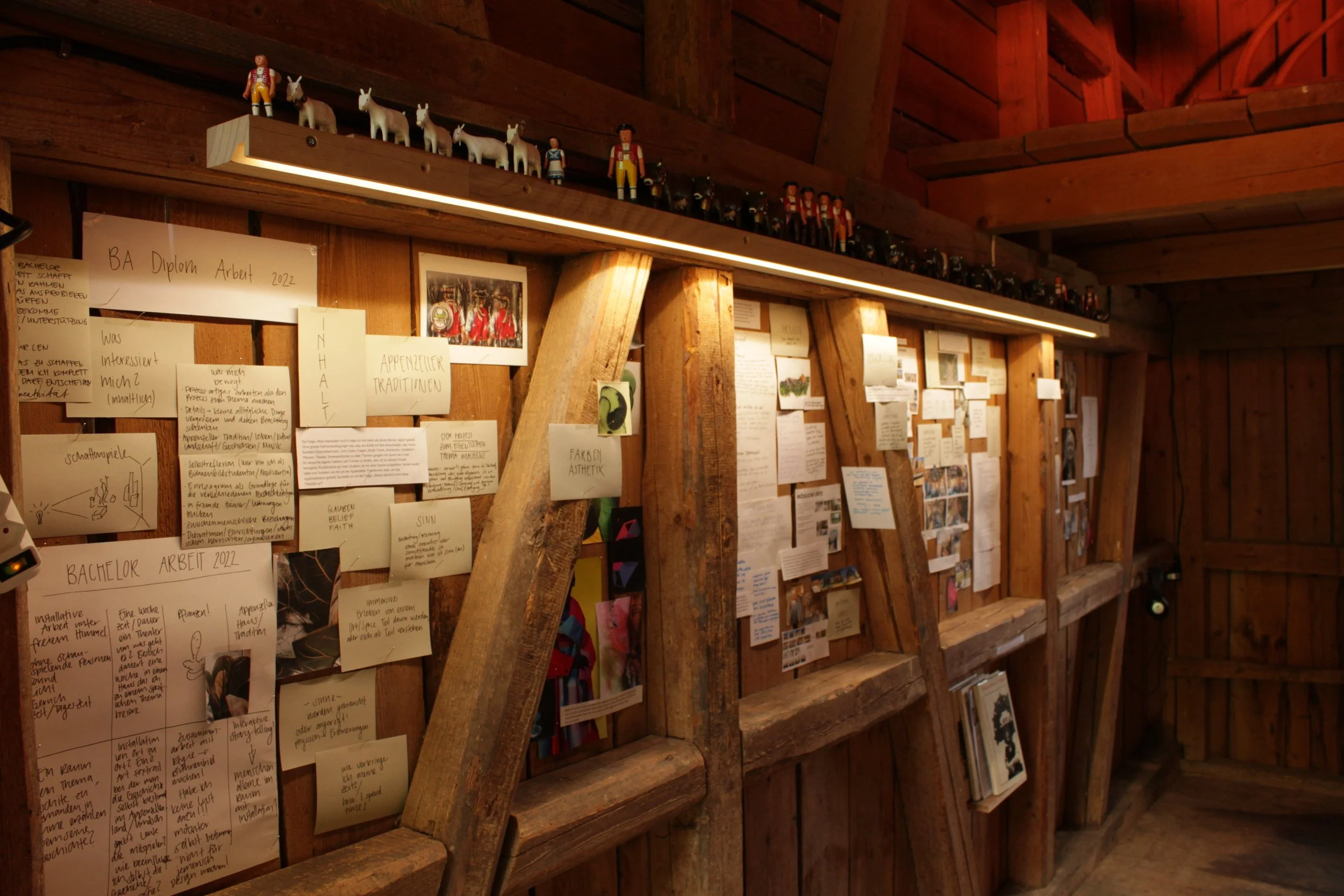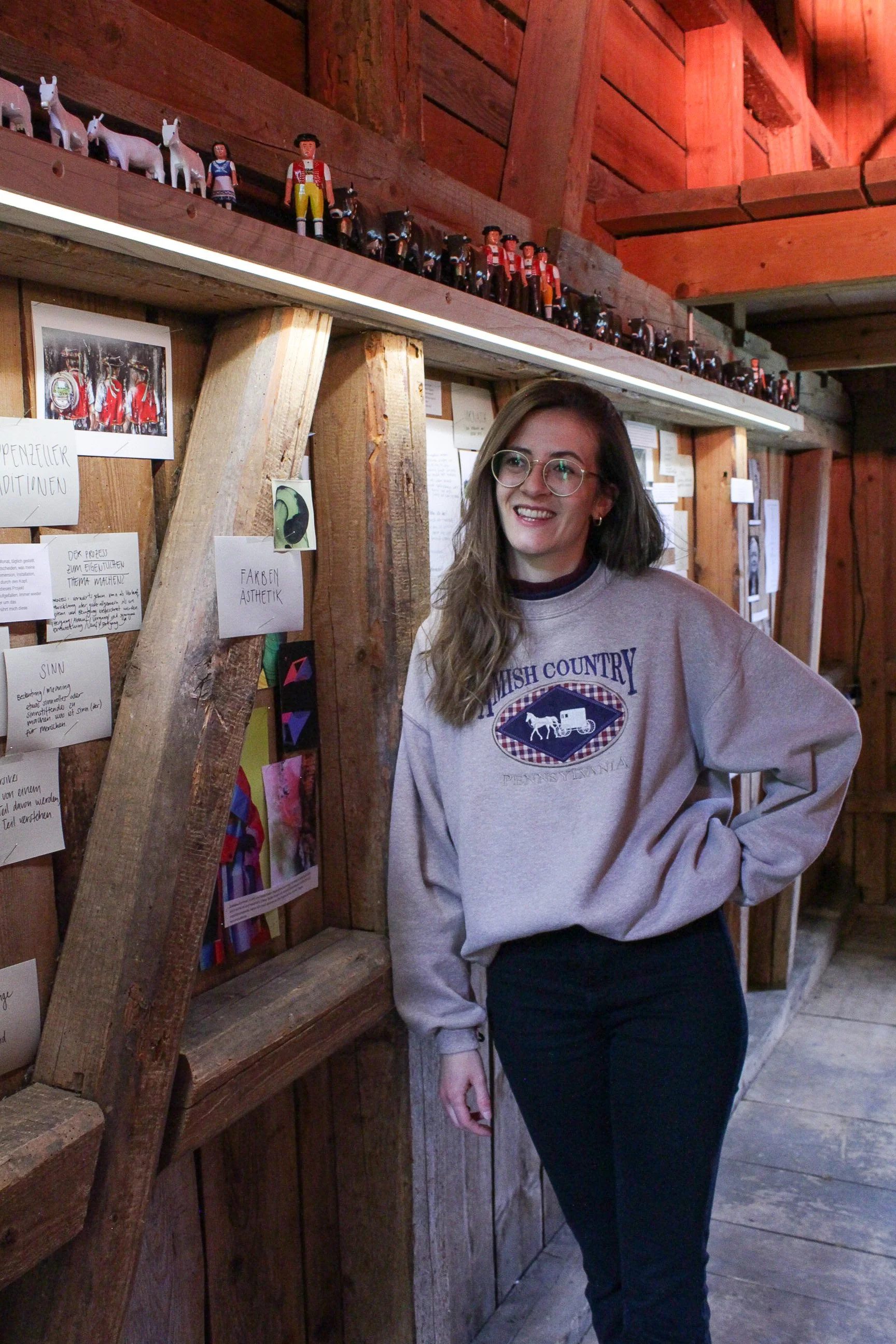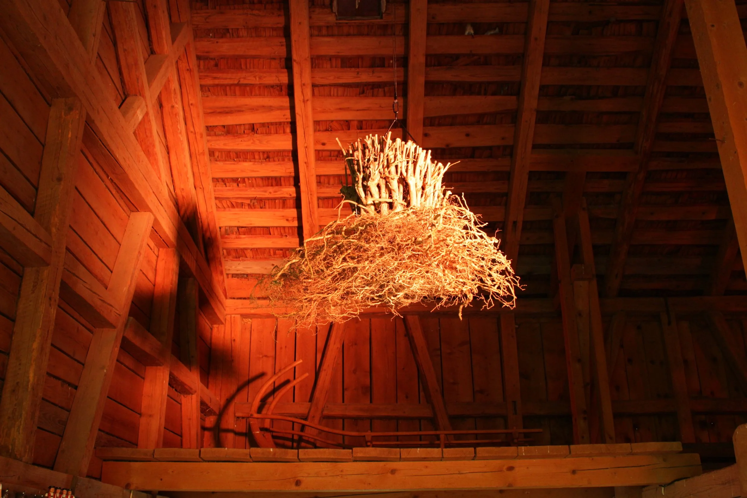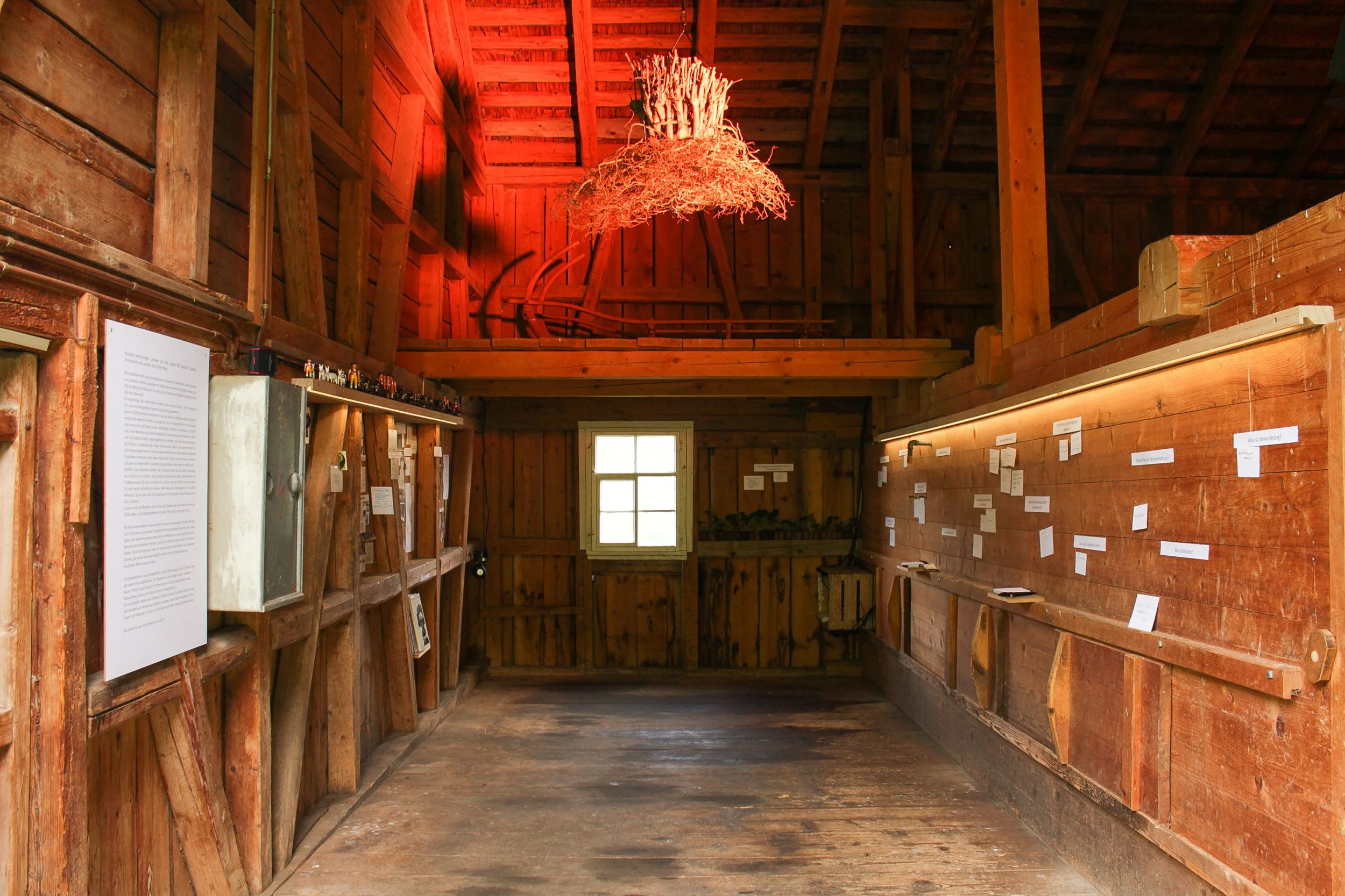 In dieser immersiven Installation, in der die Sinne auf Reisen geschickt wurden, begibt man sich in eine Welt aus Fragen und möglichen Antworten. Die Szenografie war nicht nur visuell erlebbar, sondern auch über die Sinne und zeigte sich unter anderem durch Appenzeller Klänge und Gerüche. Das Thema Wurzel konnte für mich an keinem anderen Ort als in Urnäsch beginnen, da wo ich verwurzelt bin.